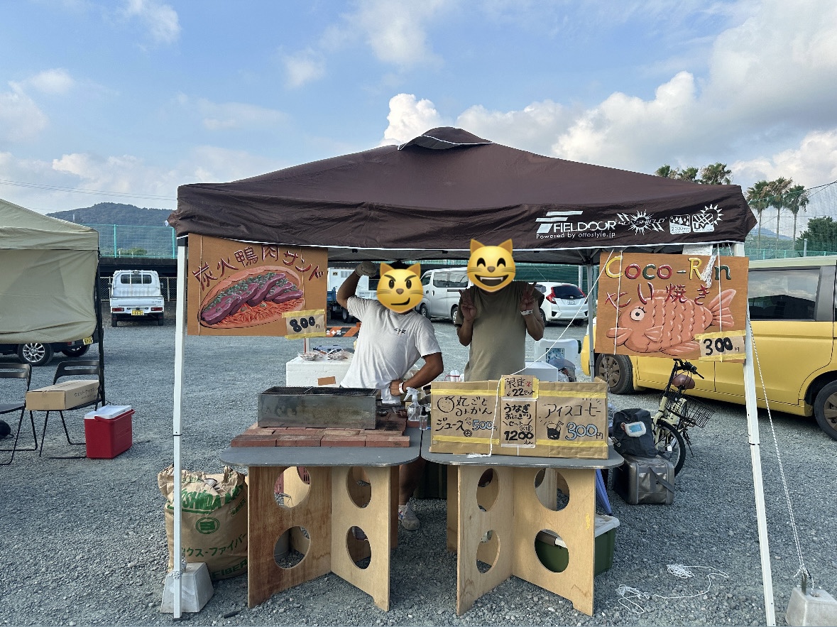 三ヶ日中学校で夏の花火大会。午後2時ごろに行って屋台の準備。